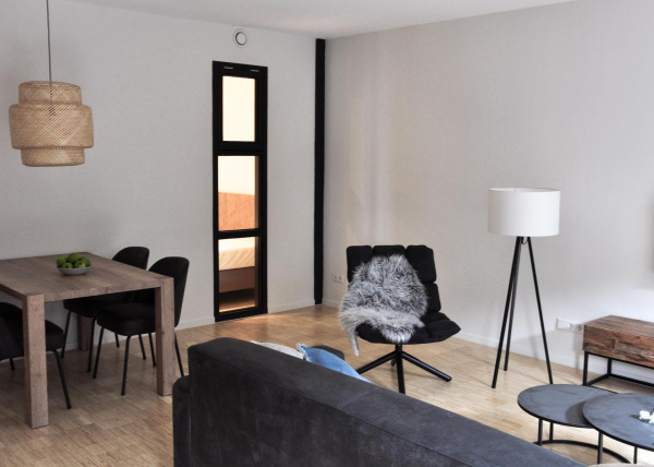 Dieses Apartment für vier Personen im Erdgeschoss verfügt über ein geräumiges Wohnzimmer mit einer gemütlichen Sitzecke und einem Smart-TV. Die offene Küche ist komplett ausgestattet mit Induktionskochfeld, Kombi-Mikrowelle, Kühl-/Gefrierschrank, Geschirrspüler, Wasserkocher und Nespresso-Maschine. Das erste Schlafzimmer verfügt über ein eigenes Badezimmer mit begehbare Dusche. Die Toilette ist separat. Der zweite Schlafplatz ist ein Etagenbett in einer Nische im Flur. Sie haben außerdem Zugang zu einer schönen, sonnigen Gemeinschaftsterrasse mit herrlichem Blick auf die Seeschleuse, die Sie mit den Gästen der anderen Apartments teilen. In der Waschküche des Dock Hotels stehen Ihnen mehrere Waschmaschinen und Trockner zur Verfügung.