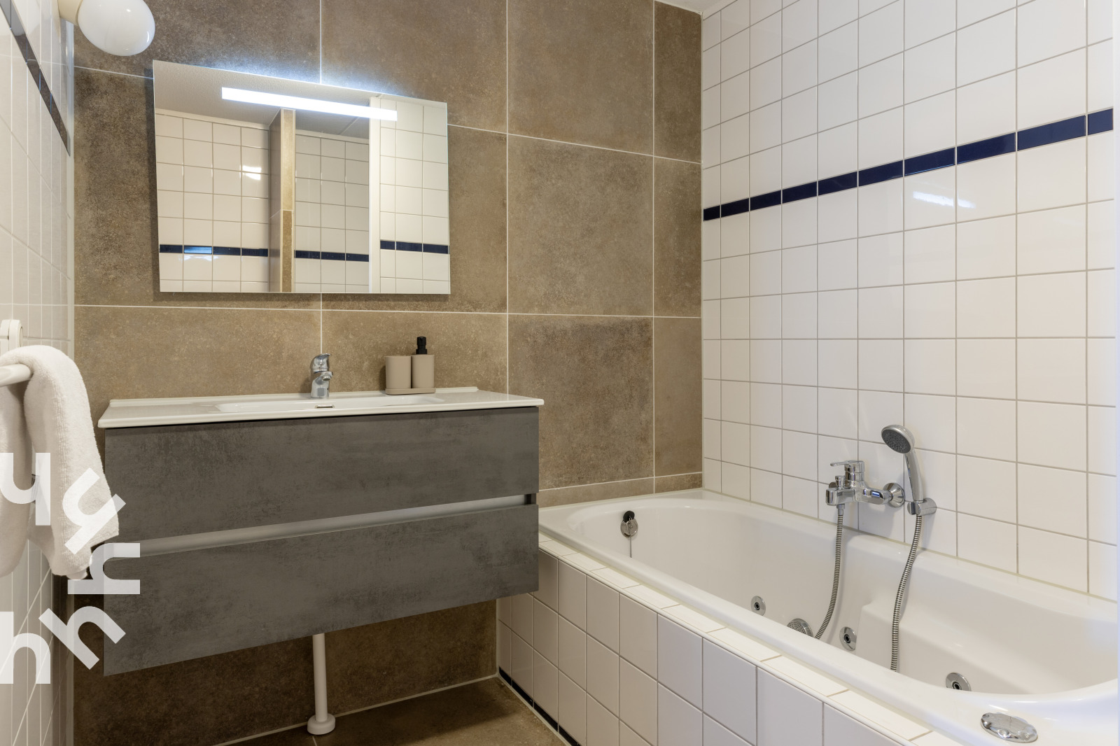 Diese Wohnung im Erdgeschoss ist auch für behinderte Gäste geeignet und bietet Komfort und Bequemlichkeit in einem modernen, gemütlichen Ambiente. Das gemütliche Wohnzimmer ist stilvoll eingerichtet und verfügt über eine geräumige Essecke und eine bequeme Sitzecke mit Fernseher. Die Gartentüren führen auf die sonnige Terrasse, die direkt am Wasser liegt. Die offene Küche ist komplett ausgestattet und ideal für diejenigen, die gerne selbst kochen. Sie verfügt über eine Kochinsel mit Induktionskochfeld, Geschirrspüler, Kombimikrowelle, Backofen, Filterkaffeemaschine, Wasserkocher, Kühl- und Gefrierschrank. Es gibt zwei Schlafzimmer, jedes mit zwei Einzelbetten. Das luxuriöse Badezimmer ist mit einem Whirlpool, einer Duschkabine und einem Waschbecken ausgestattet. Es gibt auch eine separate Toilette. Draußen können Sie sich auf der großzügigen Südterrasse mit Gartenmöbeln und einer Markise entspannen. An der Vorderseite der Wohnung gibt es eine zusätzliche Sitzecke, wo Sie die Aussicht und die untergehende Sonne auf dem Wasser genießen können. Fahrräder können in einem abschließbaren Schuppen sicher untergebracht werden. Ihr Auto können Sie auf dem öffentlichen Parkplatz des Parks abstellen. Für Ihre Bequemlichkeit stehen Gepäckwagen zur Verfügung, mit denen Sie Ihre Habseligkeiten leicht in die Wohnung bringen können. Waschen und Trocknen ist im Sanitärgebäude des Wasserparks möglich.