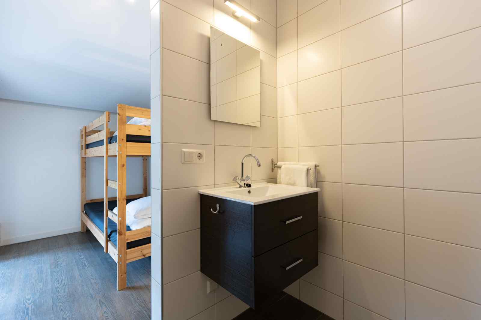 Das Ferienhaus ist komplett im Erdgeschoss. Gemütlich eingerichtetes Wohnzimmer mit Essbereich und Sitzecke mit Fernseher. Es gibt verschiedene Brettspiele im Haus. Die Küche verfügt über einen Geschirrspüler, einen Fünf-Flammen-Herd, einen Kühlschrank, eine Gefriertruhe, eine Mikrowelle, einen Backofen und eine Filterkaffeemaschine. Es gibt ein Schlafzimmer mit zwei Etagenbetten, ein Schlafzimmer mit zwei Einzelbetten und einem Etagenbett und ein Schlafzimmer mit zwei Einzelbetten. Jedes Schlafzimmer hat ein eigenes Badezimmer mit Dusche, Waschbecken und Toilette. Draußen eine private Terrasse mit Gartenmöbeln und Grill. Kostenlose Parkmöglichkeiten.
