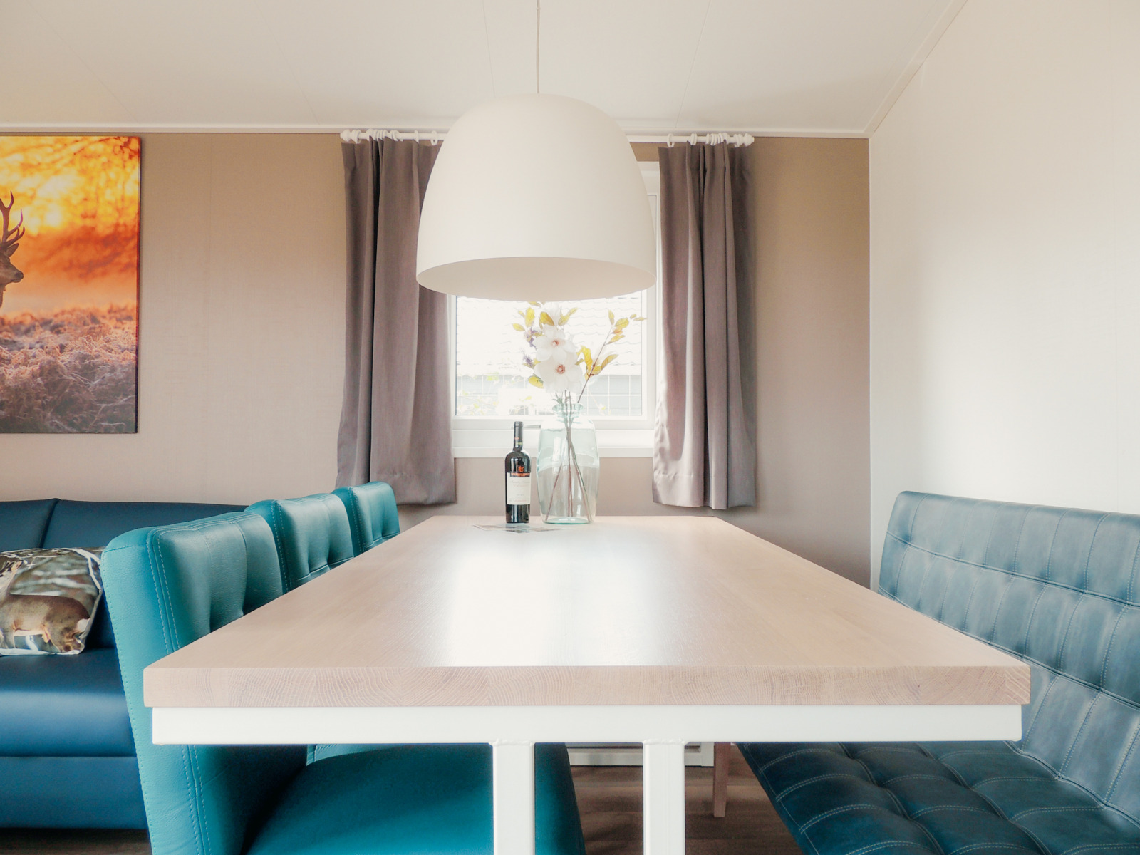Dieses moderne und geräumige Chalet ist komplett ausgestattet. Das Wohnzimmer ist geschmackvoll eingerichtet und mit einem Flachbild-TV ausgestattet. Die Küche hat einen Vier-Flammen-Herd, eine Mikrowelle, einen Senseo, einen Wasserkocher und einen Kühlschrank. Es gibt drei geräumige Schlafzimmer, eines mit einem Etagenbett, eines mit zwei Einzelbetten und eines mit einem Doppelbett. Es gibt ein Badezimmer mit einer geräumigen Dusche, Toilette und Waschbecken.