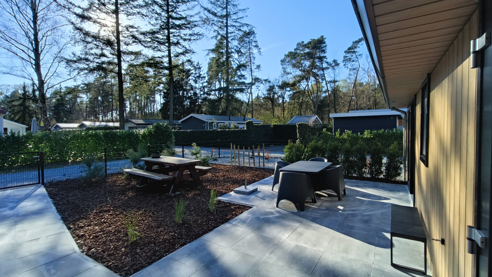 Dieses Vier-Personen-Chalet befindet sich im Recreatiebospark De Reehorst und liegt im grünen Herzen der Achterhoek, in der Nähe des stimmungsvollen Burgdorfes Vorden. Umgeben von Wäldern, ist dieser Ferienpark ein idealer Ort für alle, die Ruhe und Natur suchen. Für Familien mit Kindern gibt es jede Menge Unterhaltung: ein spezielles Kinderbecken mit Wasserspielgeräten und ein lustiger Spielplatz sorgen für endlosen Spaß. Angrenzend an den Park befindet sich das Bosrestaurant De Reehorst, in dem Sie in gemütlicher Atmosphäre leckere Gerichte genießen können. Von der geräumigen Terrasse aus haben Sie einen Blick auf die umliegenden Grünflächen. Darüber hinaus verfügt das Restaurant über eine gemütliche Bar und einen großen Saal, der sich hervorragend für Feste und Versammlungen eignet. Vorden bietet viele Möglichkeiten für Entspannung und Abenteuer. Erkunden Sie die Gegend auf Wander- und Radwegen oder besuchen Sie Museen, Kunstgalerien und historische Kirchen. Für Kinder gibt es Spielplätze und das Heiligenbeeldmuseum in Kranenburg. Die Region bietet auch tolle Ausflugsziele wie den Boomkroonpad, das Museumsdorf Orvelte und das Schmetterlingsparadies Papiliorama.