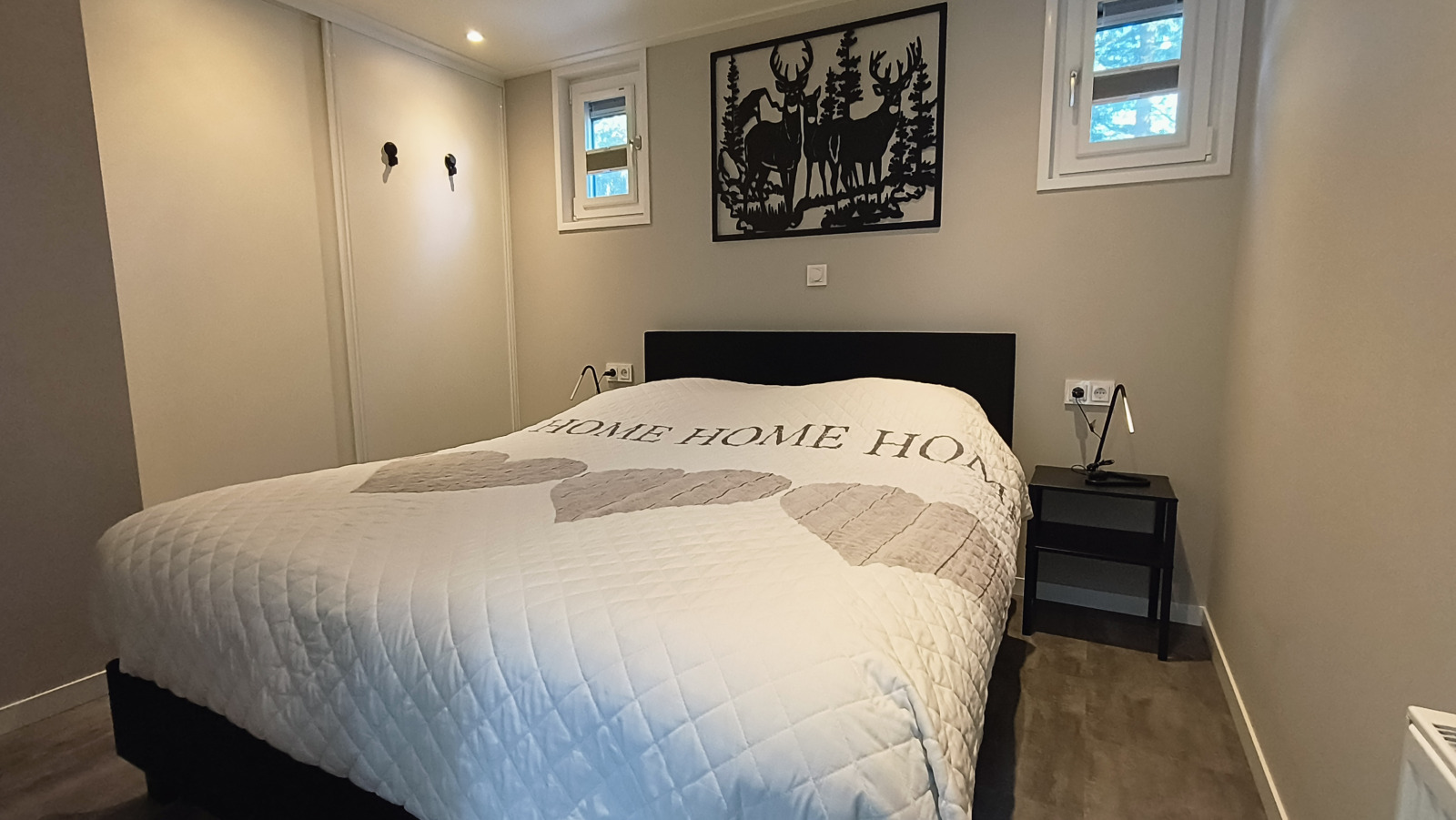 Dieses komfortable Ferienhaus ist komplett ausgestattet für einen erholsamen Aufenthalt. Das gemütliche Wohnzimmer verfügt über ein bequemes Sofa, ideal zum Entspannen mit einem guten Buch oder einem Film auf dem Fernseher. Die offene Küche ist komplett ausgestattet und verfügt über eine praktische Kaffeeecke mit einer Auswahl an Filterkaffeemaschinen, Senseo und Nespresso. Darüber hinaus ist die Küche mit einem Geschirrspüler und einem Gasherd ausgestattet. Die Wohnung hat zwei Schlafzimmer, eines mit einem Doppelbett und eines mit zwei Einzelbetten. Das Badezimmer hat eine geräumige, begehbare Dusche, ein Doppelwaschbecken und eine Toilette. Im Außenbereich steht Ihnen ein privater Garten mit Gartenmöbeln zur Verfügung. Es gibt auch einen Fahrradschuppen und einen privaten Parkplatz am Haus.
