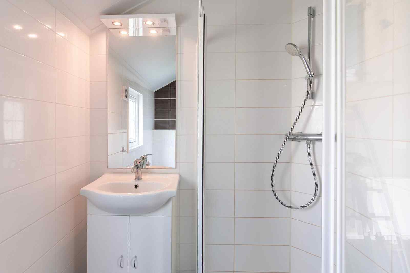 Das Wohnzimmer hat eine Sitz- und Essecke und einen Fernseher. Die Küche ist mit einem Vier-Flammen-Herd, einer Mikrowelle, einem Geschirrspüler, einem Kühlschrank mit Gefrierfach, einem Wasserkocher und einer Filterkaffeemaschine ausgestattet. Es gibt drei Schlafzimmer, von denen zwei mit zwei Einzelbetten ausgestattet sind. Das andere (Kinder-)Schlafzimmer ist ein Schlafboden im Dachfirst mit zwei Einzelbetten. Das Badezimmer hat eine Dusche, ein Waschbecken und eine Toilette. Durch die Flügeltüren im Wohnzimmer gelangt man auf die möblierte Terrasse. Ihnen wird ein Parkplatz für ein Auto auf dem zentralen Parkplatz des Parks zugewiesen.